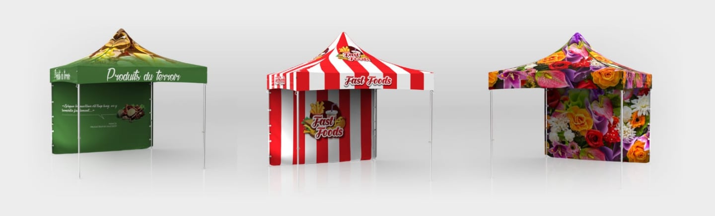 Vous recherchez une tente pliante qui reflète votre activité tout en restant abordable ? Découvrez notre gamme de barnums pré-personnalisés, une solution économique et efficace pour mettre en valeur votre stand. Contrairement à une personnalisation sur-mesure, ces modèles prêts à l’emploi permettent de bénéficier d’un barnum à votre image sans dépasser votre budget.