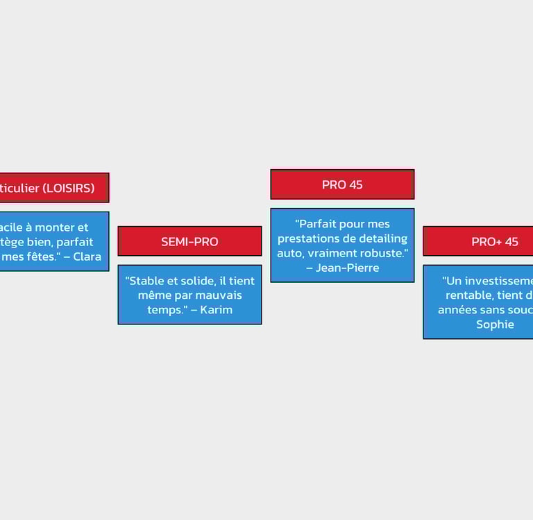 Avis des utilisateurs : Les avis des utilisateurs reflètent souvent la satisfaction par rapport à la qualité et la performance des barnums. Les gammes Pro et Pro+ premium reçoivent généralement des avis très positifs, les utilisateurs appréciant particulièrement leur facilité de montage, leur résistance et leur esthétique soignée. En comparaison, les avis sur le barnum 1er prix sont plus mitigés. Bien que certains utilisateurs apprécient son coût bas pour des besoins temporaires, beaucoup expriment des préoccupations quant à sa durabilité limitée.